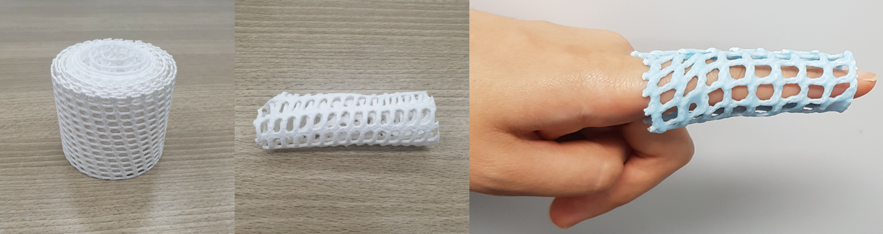 “최근 국가과제인 ‘초기창업패키지’를 통해 PCL 스플린트인 ‘Curo’의 개발을 시작하게 되었습니다. 이르면 올해 중의 상용화를 목표로 개발 중에 있죠. 현재 개발 중인 Curo는 프로토타입까지 완성된 상태입니다. 신소재를 활용해 코팅을 진행했기에 기존의 석고 깁스나 유리 섬유 깁스의 소양감, 미통풍, 악취 등 단점을 모두 보완할 수 있습니다. 탈부착이 자유롭고 성형 역시 제약이 없습니다. 뜨거운 물에 Curo를 잠시 담갔다 빼낸 후 국소 부위에 맞게 착용시켜주기만 하면 됩니다. 신소재가 스스로 붙은 성질이 있어 추가적인 밴딩 작업도 필요가 없습니다. 기존의 깁스 시장에 새로운 변화를 일으킬 수 있는 제품이라고 확신하고 있습니다”