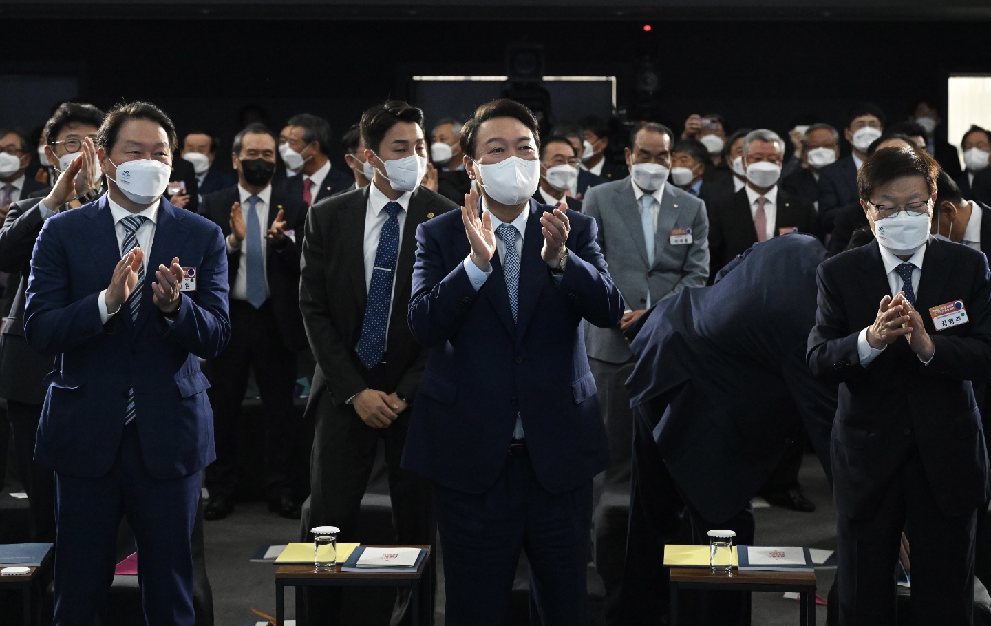 첫 만남은 대통령직인수위원회 요청으로 3월21일 이뤄진 윤 당선인과 6개 경제단체장과의 간담회였다. 이후 서울에서 열린 경제안보 포럼에서 재회한데 이어 대한상의가 주도한 ‘2030 부산세계박람회(엑스포) 유치기원 대회’에서도 두 사람은 만남을 가졌다. 부산엑스포 유치는 새 정부와 재계가 공을 들이는 국제행사다. 윤 대통령은 당시 “정부는 박람회 유치를 위해 모든 역량을 결집할 것”이라고 약속했고 최 회장은 “민관협력 파트너로서 정부와 원팀이 돼 일심전력을 다할 것”이라고 화답했다. 윤 대통령은 직접 최 회장에게 공동 유치위원장을 맡아달라고 부탁하기도 했다.