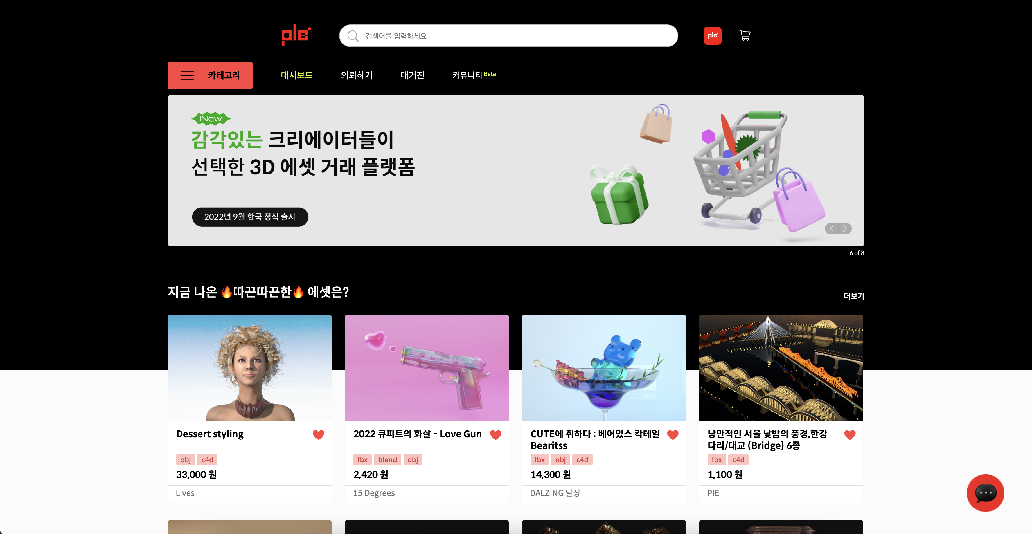 ‘PIE3D’는 모든 3D 창작자들이 자신만의 창작 세계를 펼치며 경제적 창출까지 이어질 수 있도록 도움을 주는 3D 에셋 거래 플랫폼 서비스다.