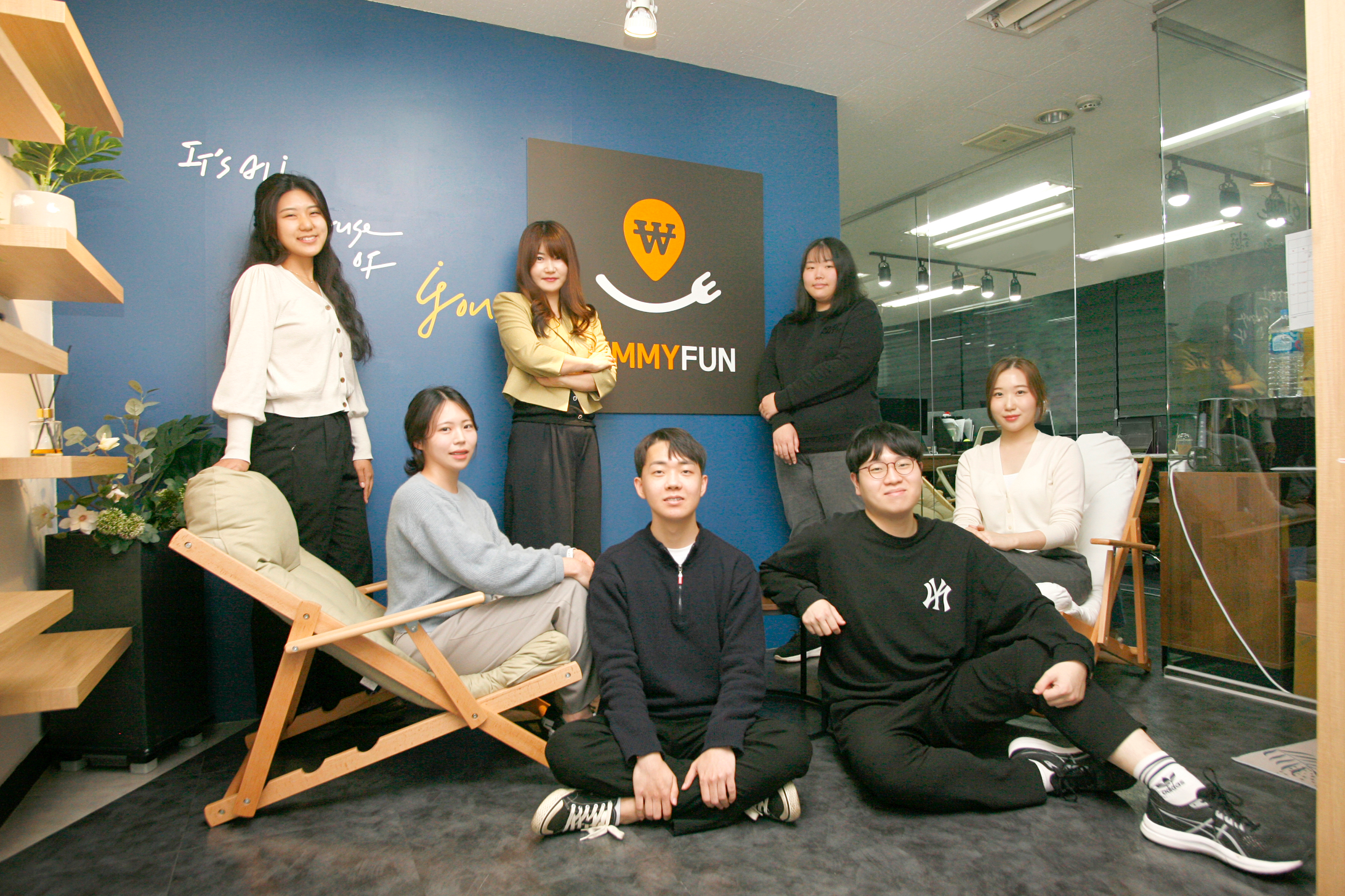 좌측부터 심영주 대리, 손희정 주임, 이나연 대표, 한순혁 사원, 최다은 주임, 경규민 사원, 이민형 사원