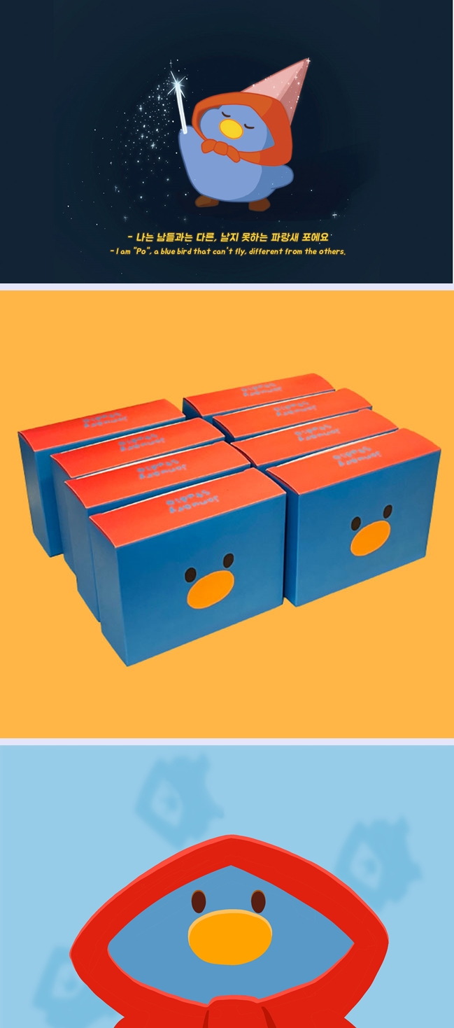일월 스튜디오는 캐릭터 기반의 다양한 문구·소품을 제작하는 브랜드다. 이들을 대표하는 캐릭터는 날지 못하는 파랑새 ‘포’다. 희망의 상징인 파랑새임에도 하늘을 날 수는 없는데, 그럼에도 슬퍼하는 대신 다른 새보다 훨씬 즐거운 삶을 산다. 그래서 남들과는 조금씩 다르나 각자의 매력이 있는 사람들에게 자신의 행운을 전파하고자 파랑새 포는 소품샵을 만들어 직접 만든 파우치를 손님들에게 제공하며 행복을 느낀다.