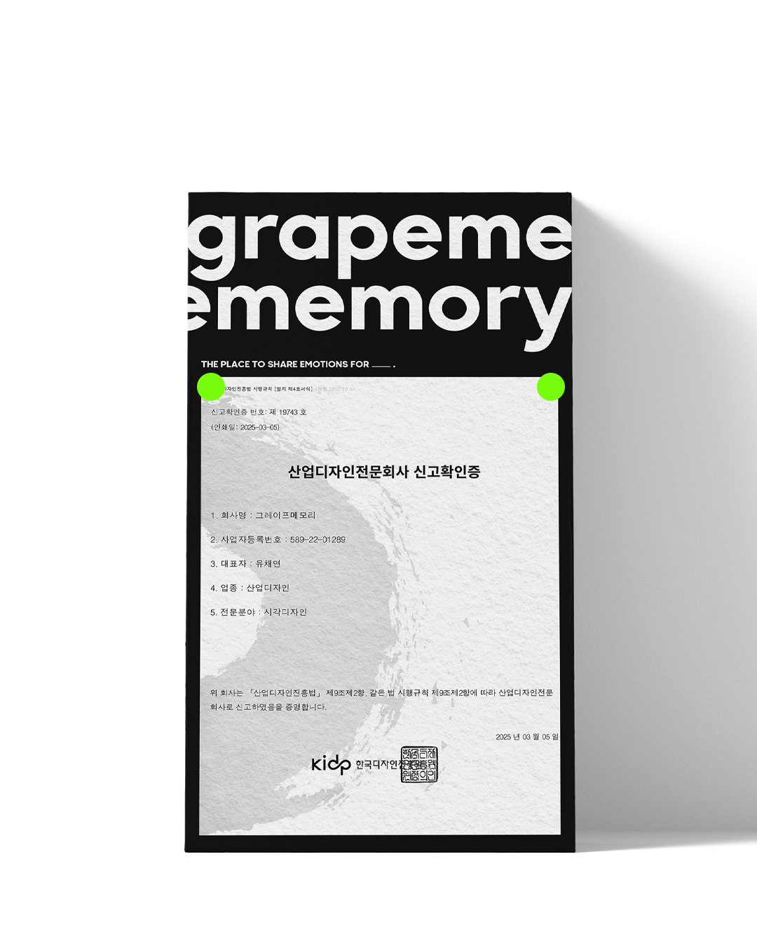 “첫 창업을 비롯해 5회에 걸쳐 브랜드 론칭을 하였고, 다행히 모든 브랜드를 엑시트를 통해 정리하며 나름의 전문성이 쌓였다고 판단했다. 이에 10여 년간 사업을 하며 느꼈던 경험을 토대로 브랜드 컨설팅 회사를 설립하기로 결심해 그레이프메모리의 문을 열었다. 현재 디자이너와 사업체, 판매자와 소비자라는 두 관계적인 부분에 있어 전문가로서 더 나은 방법으로 제안하고 소통하는 비즈니스를 전개하고 있다”