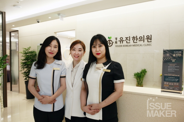어느새 훌쩍 가을이 다가온 9월의 어느 날. 성남시 산성역 인근 대형 신규 아파트 단지에 개원한 경희유진한의원 정유진 원장을 만나고자 한의원을 방문했을 당시 긍정적 에너지와 밝은 미소로 인사를 전하는 이곳 구성원들의 모습이 유독 낯설게 느껴졌다. 지금까지 병원을 방문하며 다소 지쳐있고 퉁명스러운 데스크 직원들의 모습이 어쩌면 익숙했기 때문이다. 이곳을 방문 후 또 한 번 느꼈던 낯섦은 경희유진한의원의 공간이었다. 흔히 생각하는 한의원은 고즈넉한 약장과 진한 한약 냄새가 풍기는 모습을 떠올릴 것이다. 반면 이곳은 분위기 좋은 카페나 갤러리에 온 듯한 착각이 들 정도로 은은한 조명과 곡선 위주의 공간 창출이 과연 한의원이 맞겠느냐는 의문이 들 정도였다. 진심 어린 환대와 따뜻한 공간 속에서 치료를 받지 않더라도 어느새 심신의 안정이 찾아왔으며 기자가 느꼈던 한의원의 긍정적 첫인상은 이곳을 찾는 모든 사람에게도 고스란히 전해질 것 같았다. 잠깐이지만 많은 생각이 머릿속을 오갈 때쯤 정유진 원장이 먼저 기자에게 인사를 건넸다. 병원 전체에 퍼진 긍정 에너지의 시작이 정 원장이었음을 알아차리기까지 오랜 시간이 걸리지 않았다. 처음 만난 기자에게도 오랜 지인처럼 반갑게 진심으로 맞이하는 그의 모습에서 긍정적 첫인상의 힘을 다시금 확인하는 계기가 됐다.