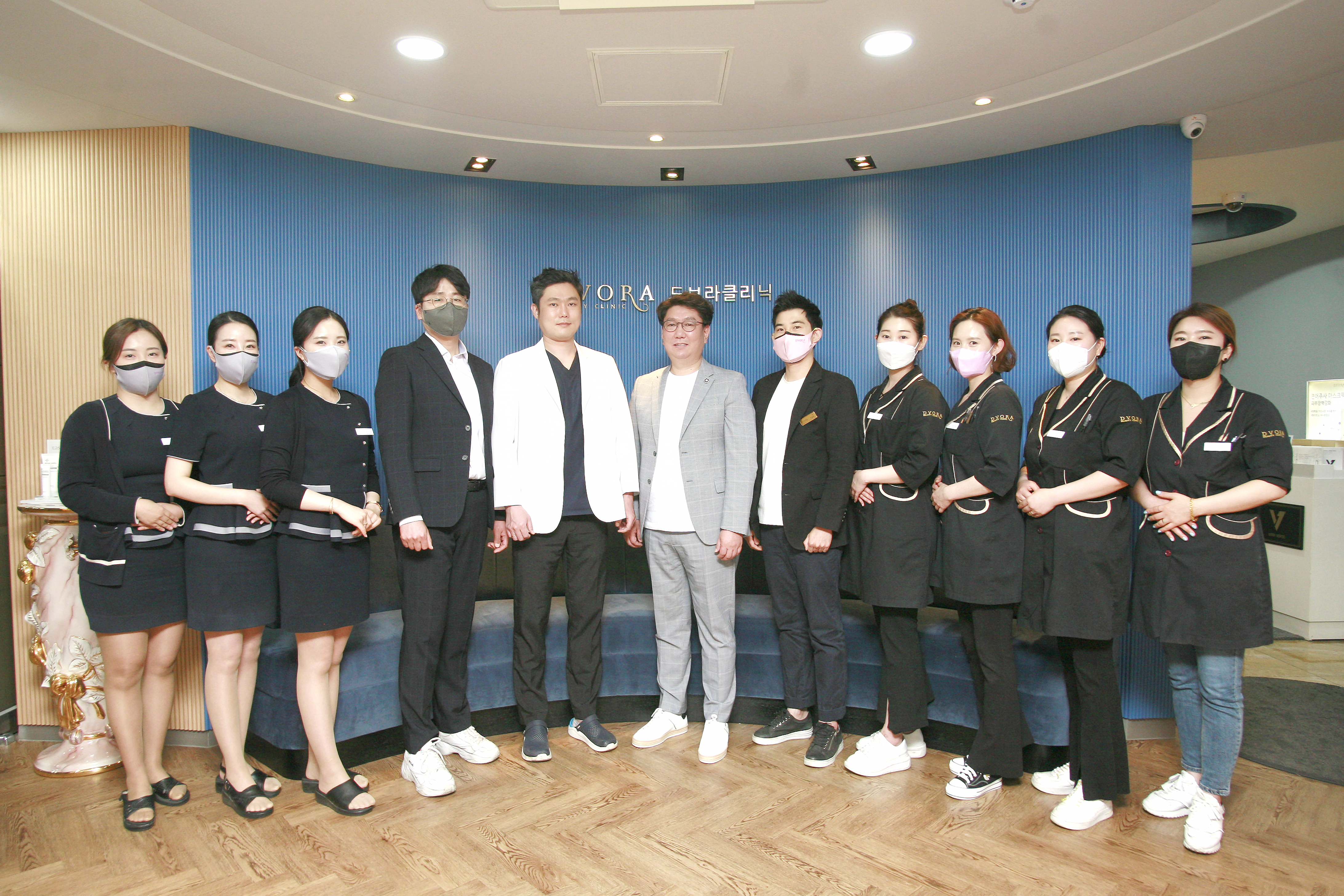 드보라메디컬코스메틱은 현직 전문 의료진과의 긴밀한 협업을 통해 개발된 코스메틱 브랜드다. (좌측 네 번째부터 조재호 부장, 김재한 원장, 김천수 대표, 구경운 실장)