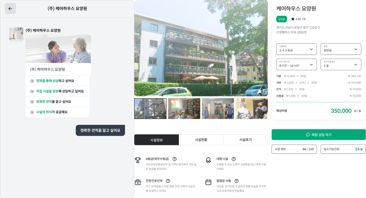 이달 론칭을 앞둔 케어하우스는 수급자와 요양 시설을 연결하는 플랫폼으로서 요양원의 걱정을 덜어주고, 수급자와 가족 보호자들의 시간 부담을 덜어주는 기능을 담고 있다.