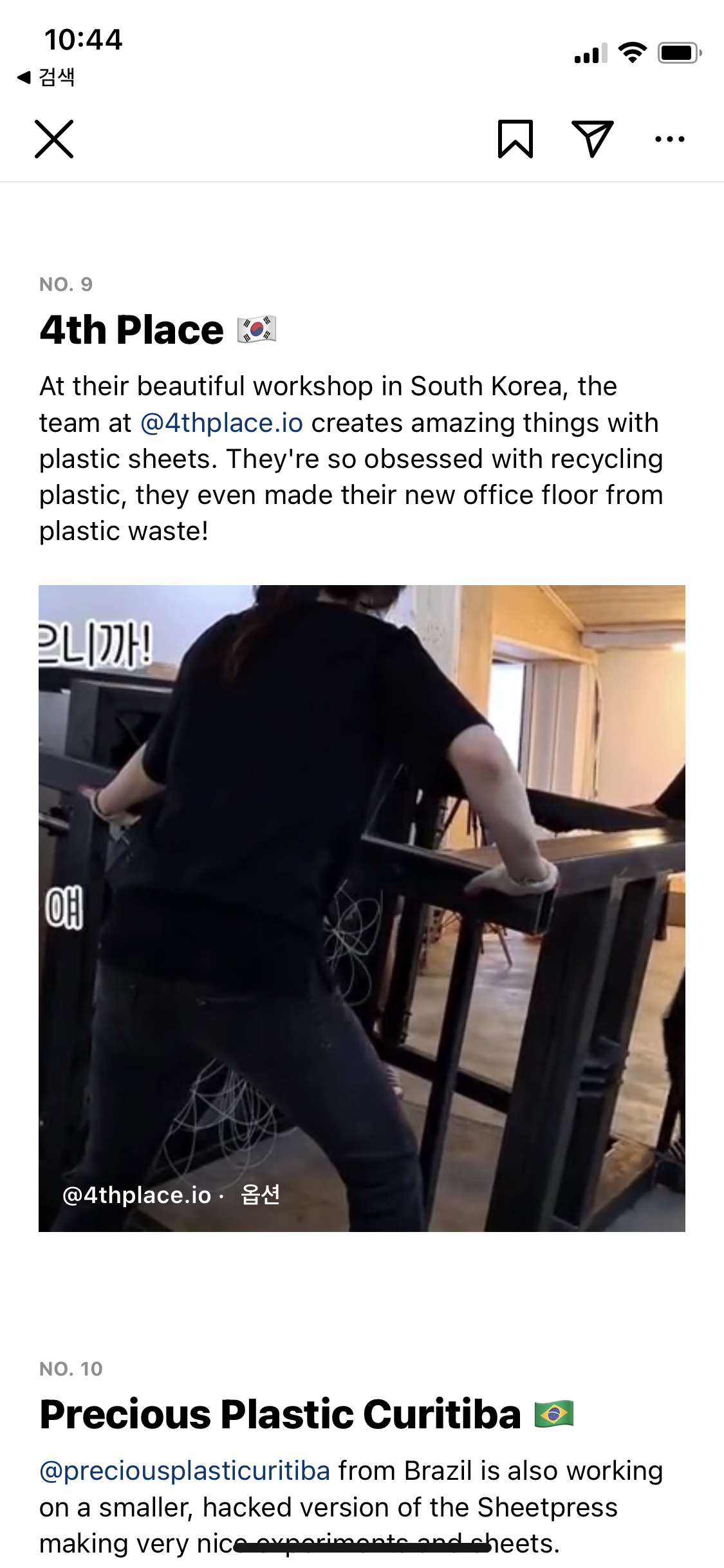 제4의공간은 폐플라스틱을 쉽게 재활용할 수 있도록 돕는 오픈소스 프로젝트인 Precious Plastic 공식 계정에 소개되며 세계적인 주목을 받았다.