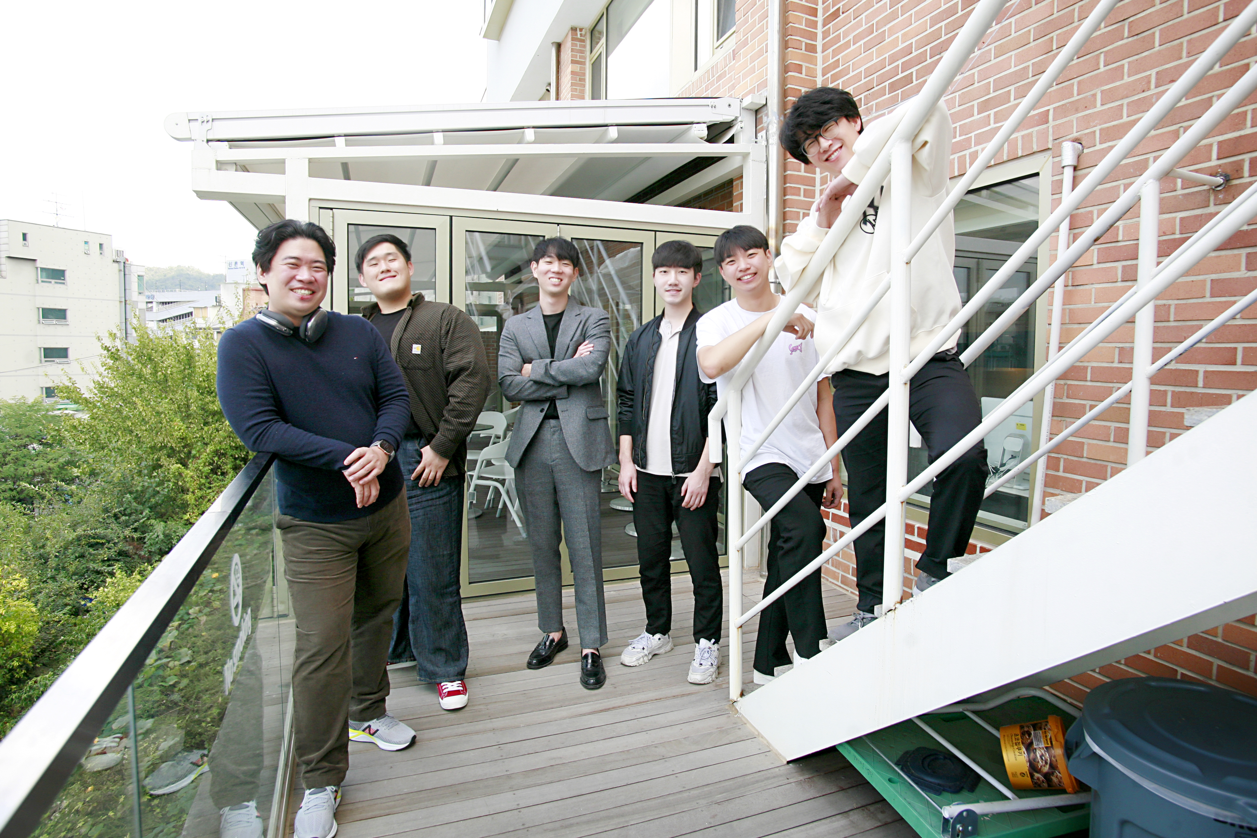 서비스와 소비자, 그리고 가능성을 쉽게 단정 짓지 않고 항상 모든 경우의 수를 열어 두고 다양하게 고민할 수 있는 이들이 모여 취미에 대한 하나의 새로운 문화를 정립해나가고 있는 (주)리버스마운틴. (좌측부터 신동식, 최재준, 김경민, 양준성, 김동영, 박요한)