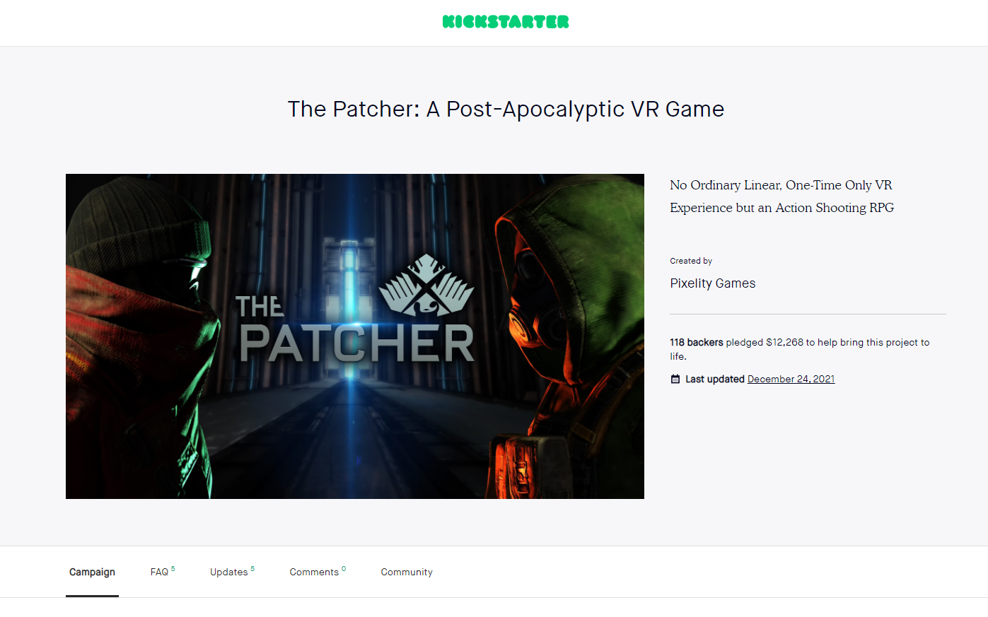 지난달 국내 VR 기업 중 최초로 킥스타터를 통해 목표 펀딩 초과달성을 이룩한 더 패쳐는 2022년 1~2분기 사이에 론칭할 예정이다.