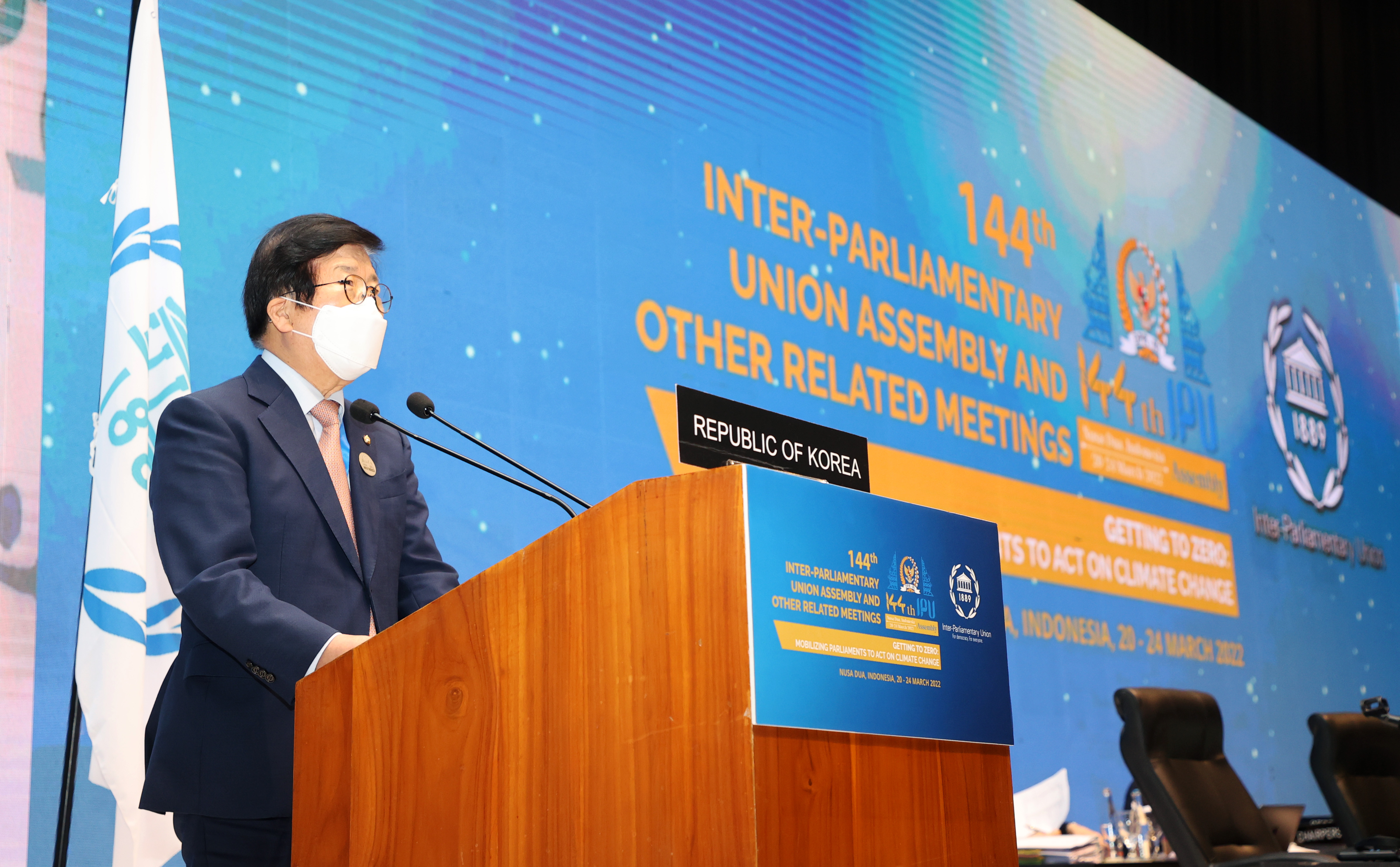 아울러 박병석 의장은 ‘탄소배출 제로 달성을 위한 각국 의회의 기후행동 촉구’를 주제로 열린 IPU총회 본회의에서 연설을 했다. 박 의장은 “의회가 지구촌 탄소배출 제로 운동에 앞장서야 한다”면서 ‘실행의 선도자’와 ‘정의로운 전환의 수호자’, ‘녹색산업의 촉진자’가 되자고 제안했다.